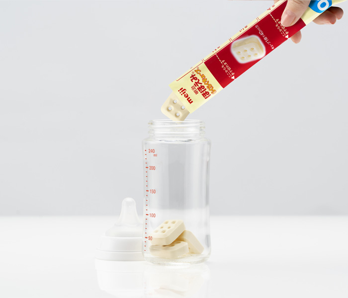 This technology provides innovative new answer which solves many problems consumers experienced using regular milk formula. Meiji has developed cube production technology that greatly enhances the convenience and usability of milk formula.