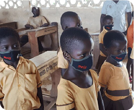 We delivered 550 masks and 60 alcohol disinfectants to children in Domiabra Village and Evans Crom Village, where we held art classes. The masks distributed free of charge by the Ghana governmentare not suitable for children, we donated locally made small size masks.