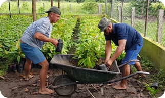 To prevent cocoa related deforestation, we are conducting educational activities for farmers and distributing highly productive cocoa's seedling and seedling for trees.