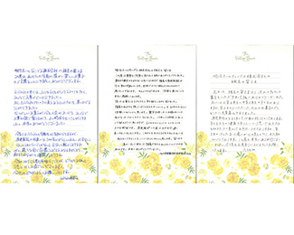 以下のお便りをクリックすると拡大されますので、みなさまの気持ちを感じていただけましたら幸いでございます。
