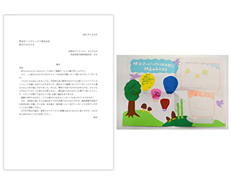 また、あわせて株主さまからお寄せいただきました、被災地の方々や障がいのある児童のみなさん宛の『応援メッセージ』を各団体宛にお伝えいたしました。